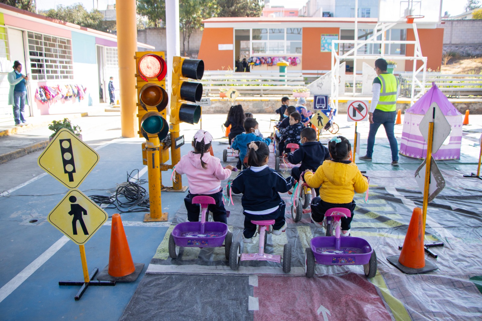 La actividad, que se realizó con la participación de 784 niñas y niños de seis instituciones educativas, inició con una plática introductoria donde se explicaron de forma didáctica las normas básicas de tránsito, la importancia de la convivencia vial entre peatones, ciclistas y conductores, y valores como el respeto y la responsabilidad en las calles. Posteriormente, las y los menores recorrieron un circuito vial a escala que simula calles y cruces urbanos, utilizando bicicletas, triciclos y caminando, con lo que adquirieron conocimientos sobre señalización y conductas seguras en la vía pública.